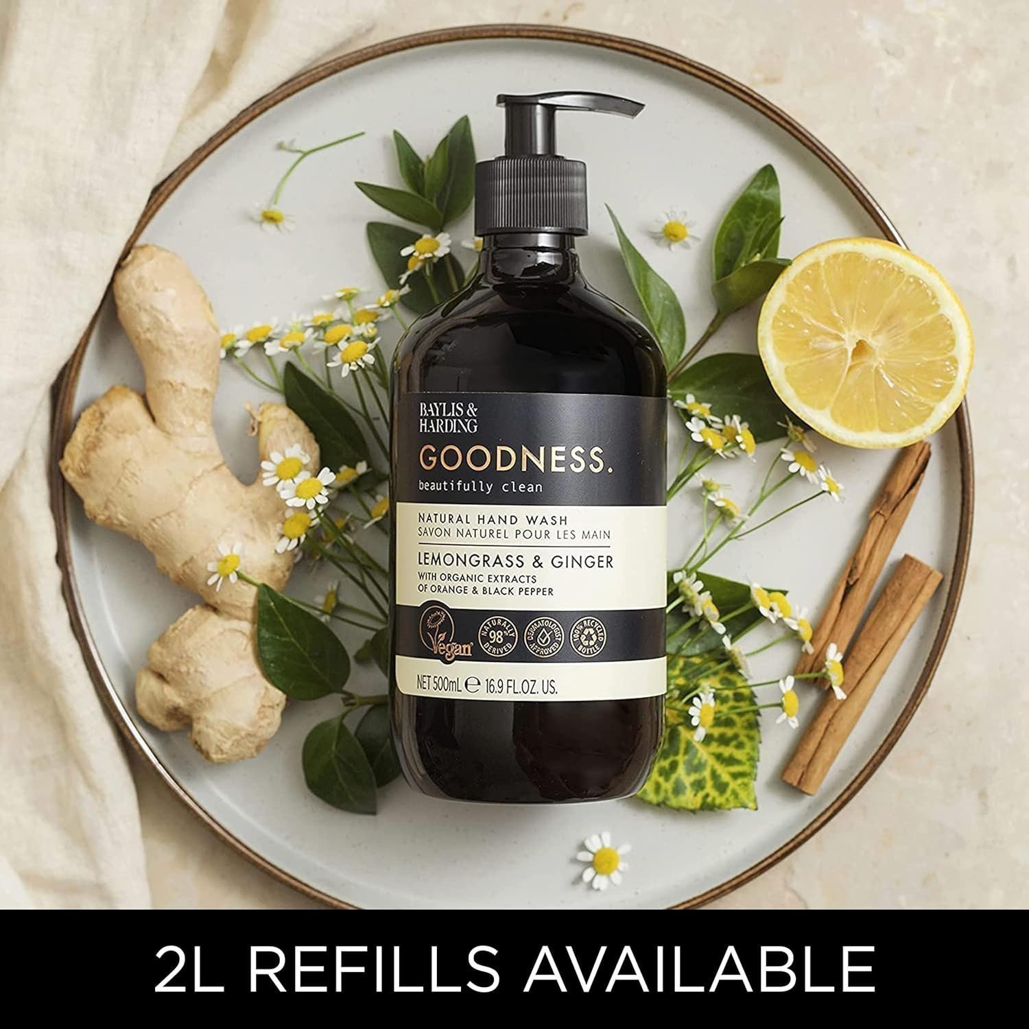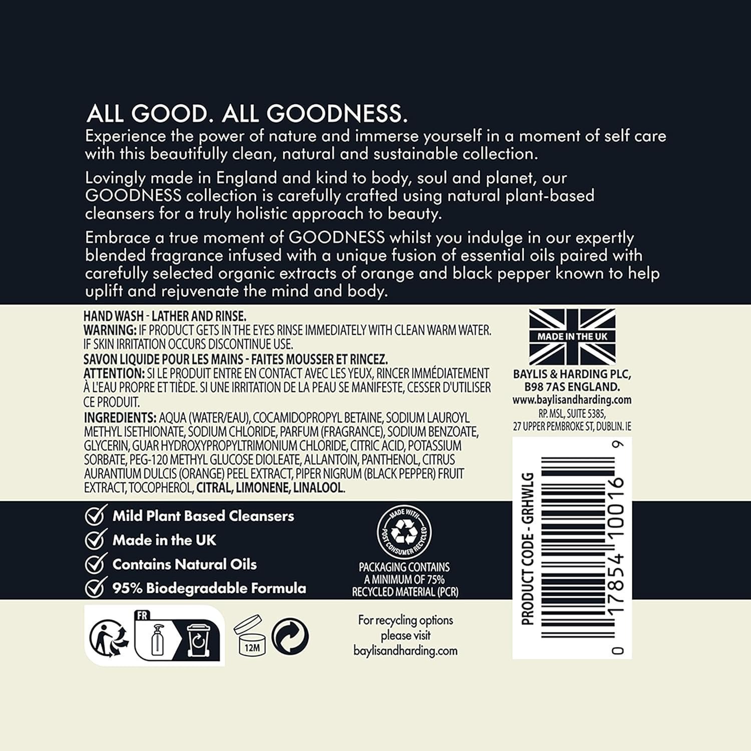 Baylis & Harding Goodness Lemongrass & Ginger Hand Wash, 500 ml (Pack of 3) – Vegan Friendly