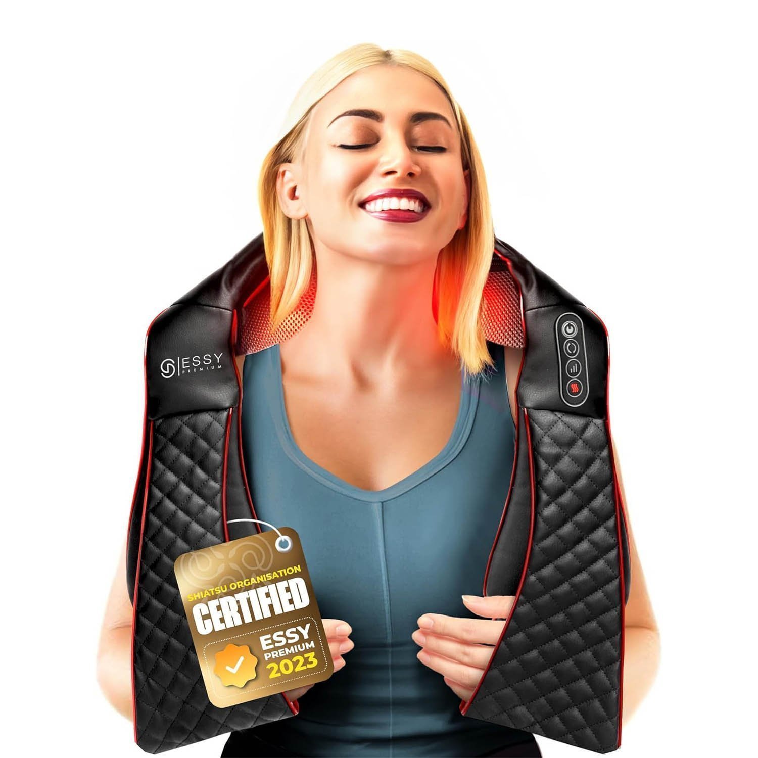 - PROFESSIONAL MASSAGE THERAPY RIGHT IN THE COMFORT OF YOUR HOME: The pursuit of relaxation and pain relief is gaining popularity. The answer? A great massage. But having one can be costly and time-consuming. Here comes ESSY Premium Neck, Shoulder, Back and Full-Body Massager. It’s like getting a professional massage without leaving your home and spending a lot of money! This shiatsu back massager with heat is based on massage and heat therapy which can be carried out on various parts of the body.