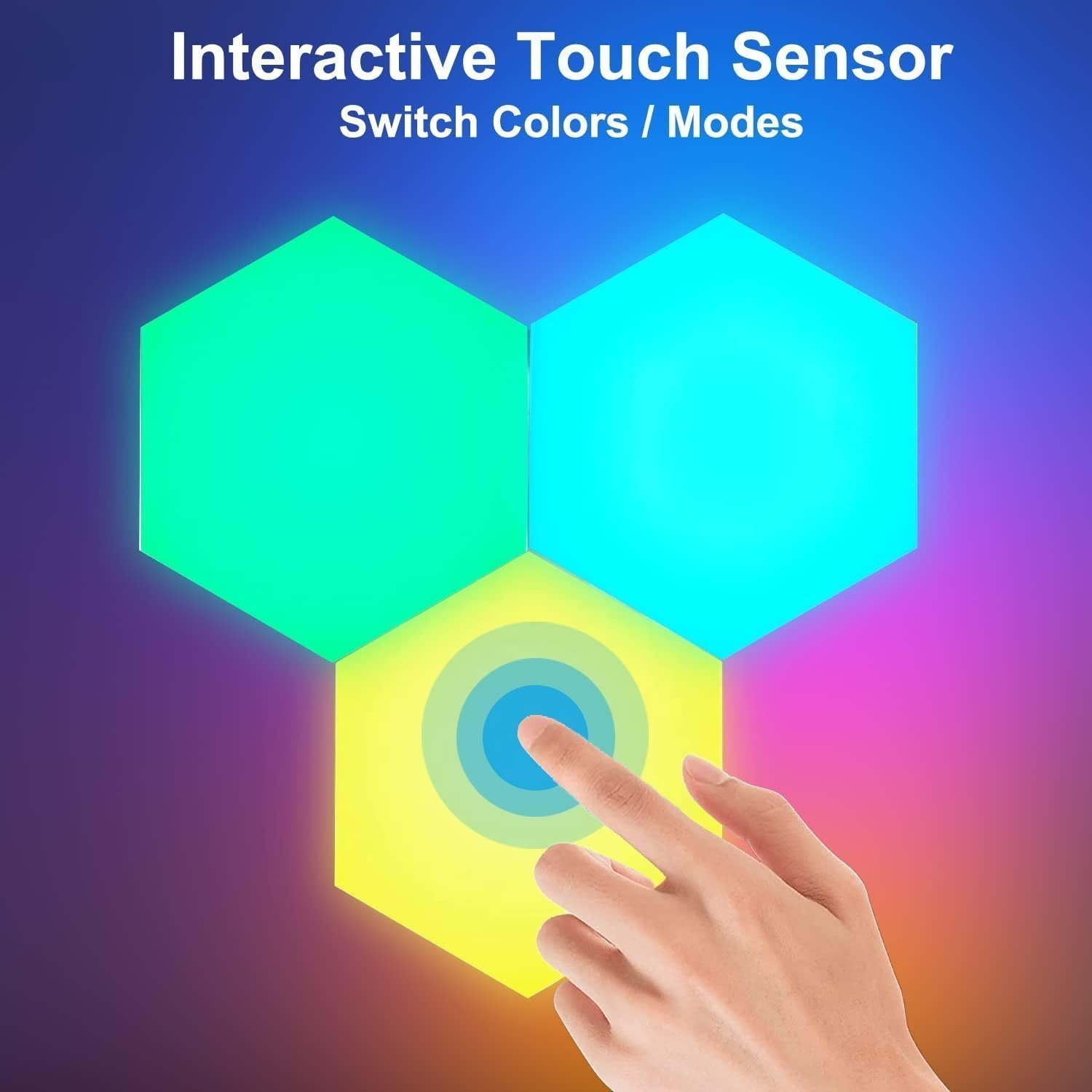 Hexagon LED Lights with Remote Control, RGB Gaming Lights LED Wall Lights Hexagon Light Panels Touch Sensitive, 7 Panels