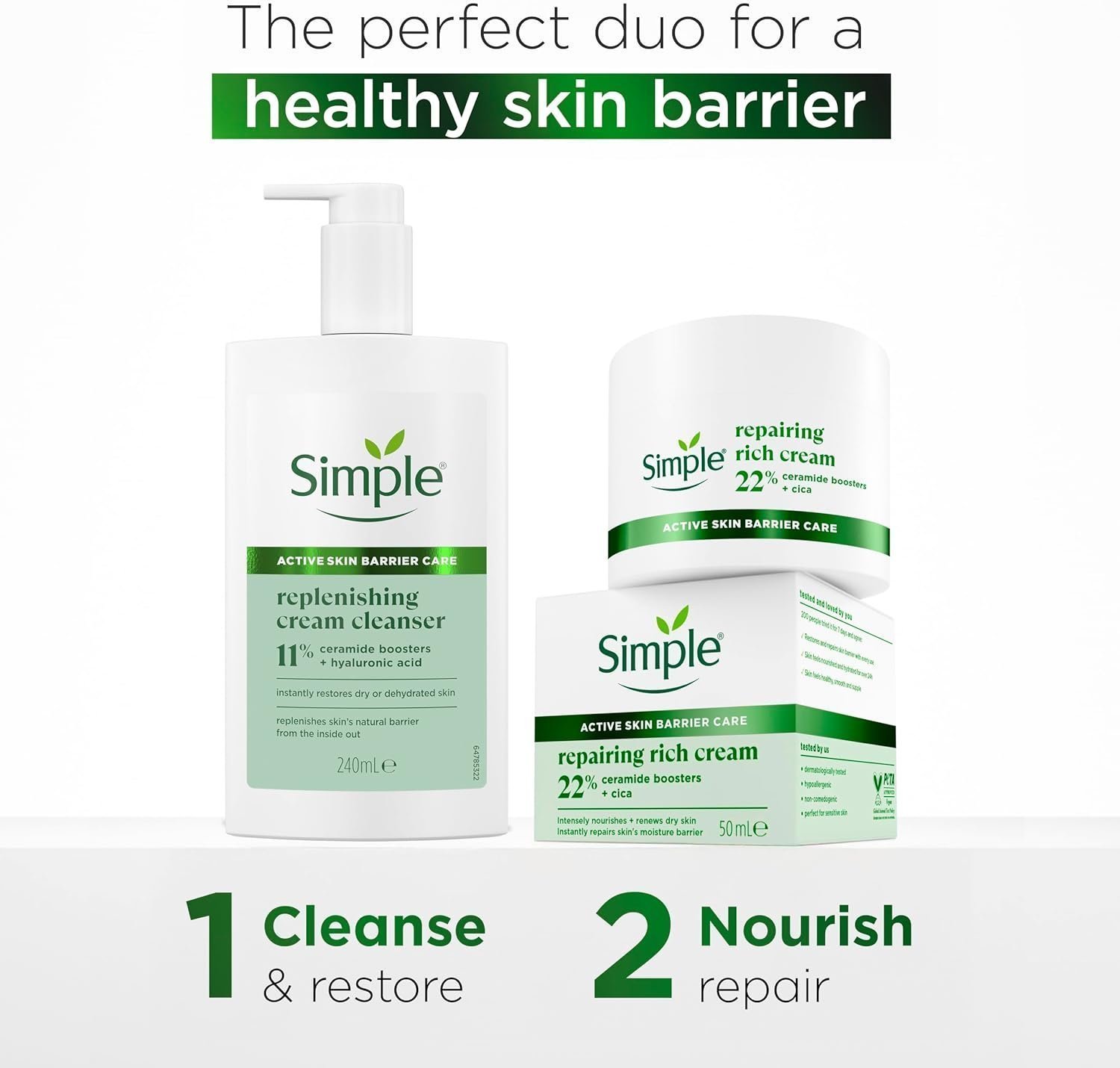• Powered by 22% Ceramide Boosters, Simple Repairing Rich Face Cream repairs the skin barrier, leaving the skin instantly soft and supple