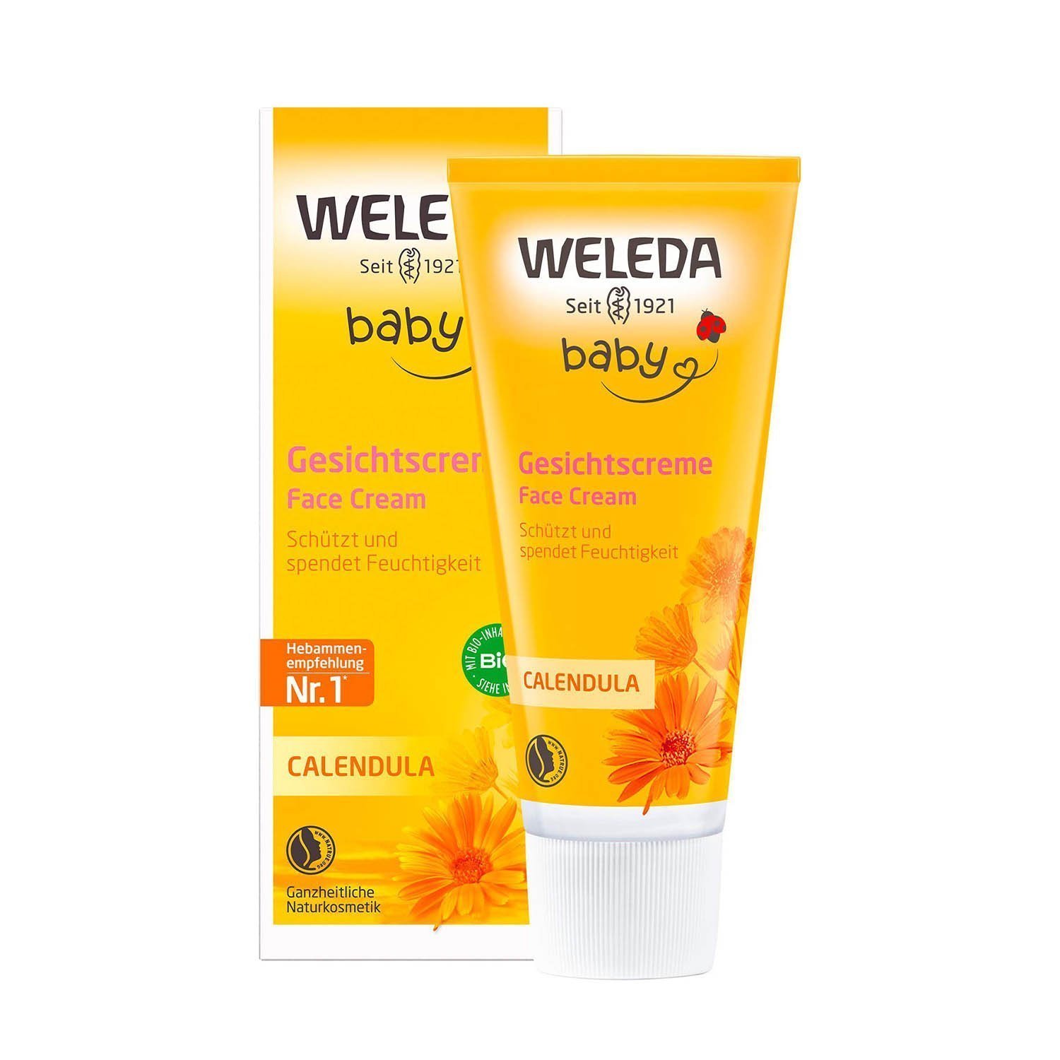 Weleda Baby Face Cream, Calendula Moisturiser, Moisturising Cream for Baby, Delicate Skin, Dermatologically Tested, Gentle Protection, Developed by Professionals, Lanolin, 50ml
